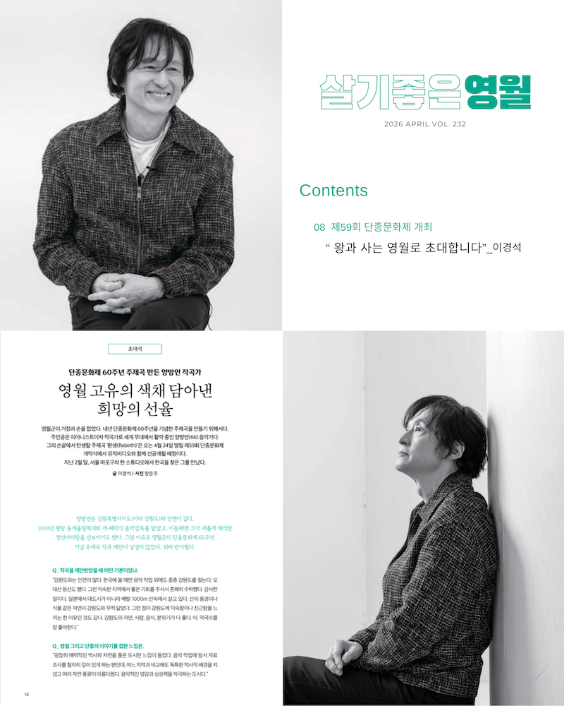 梁邦彦のインタビューが、寧越郡の広報誌に掲載されました。